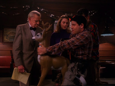 Windom Earle certainly makes a pretty scary, yet amusing Log Lady. I love how he manages to create complete chaos at the contest. You'd think after the Little Pine Weasel disaster the people of Twin Peaks would have learned not to attend, or at least not to panic, at public events. Either way, it was definitely entertaining to watch.